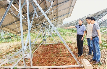 “光伏面板用钢架支撑,离地在1.5米到3米之间,并不妨碍农作物的生长。但光照受影响,作物生长会变慢,产量可能降低。所以,现在种植主要是尝试、比较。”老郑说,土地整理改造还在继续,包括泥道的美化绿化、边坡地的利用等。