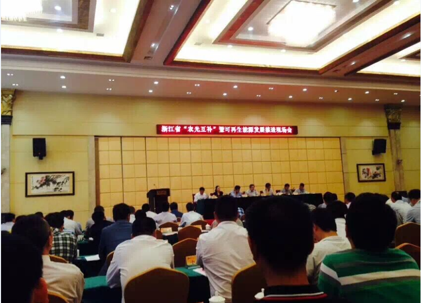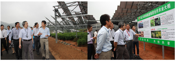 随后衢州市发改委主任项瑞良从衢州市新能源装机总量和光伏产业链的发展情况总结了衢州市新能源产业的发展成果,阐述了“农光互补”模式应当实现的6个目标:土地增肥、农民增收、企业增效、政府增税、环境增美、投资增长;在讲话中项主任对同景的技术优势即双轴跟踪提升发电量、项目区内无永久固定建筑物、光伏板下可进行高效的农业种植表达了高度的认可,并表示这是一种值得推广的“农光互补”模式。在接下来的会议中,景宁县副县长罗杰、省电力公司副总经理石华军、省农业厅副厅长王建跃先后发表讲话,表达了对可再生能源产业发展趋势的期盼和对农光互补模式的认可。