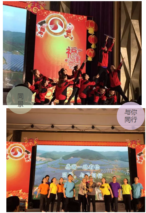 年会现场充满了激情、热烈、活跃的气氛。首先,同景集团总裁吴建农先生分享2016年工作成果,并寄语同景2017的新希望:“2016年是同景集团快速发展具有里程碑意义的一年。春节前夕,捷报频传,同景连中黄河水电2标共计90MW,这意味着同景光伏跟踪技术得到了更广泛的认可和应用。习主席参观了张家口市张北县小二台乡德胜村的400KW村级扶贫电站(该电站应用的是同景集团光伏跟踪系统),主席很高兴,并指示“希望把这种切实可行的事抓紧做起来”!此次能得到主席的认可是同景人的骄傲,更加让我坚定了继续做光伏的信心。新的一年期待同景继续扬帆起航,在新的征程上乘风破浪,再接再厉!预祝大家新春快乐,身体健康,万事如意!”