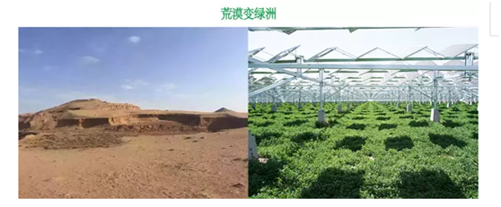 中国西部地区有着非常丰富的太阳能资源,但同时,那也是中国受风沙侵袭最严重的地区,土地的沙漠化、戈壁化面积巨大。同景在成功实践推广农光互补模式的同时,也积极探索光伏发电与沙漠治理结合的“光伏治沙”模式。“向上”收集转化了金色的阳光,“向下”收获了绿色效益,勾画出了一条现代工业与生态文明融合发展的路线,实现经济效益和生态效益共赢。未来,同景将通过技术的不断创新积累,提高光能转化效率,降低光能使用成本,不断续写“夸父逐日”的新神话,在苍茫大漠间构筑中国的“太阳城”,为普照全球的阳光赋予特殊的意义。