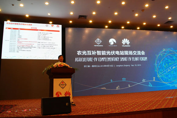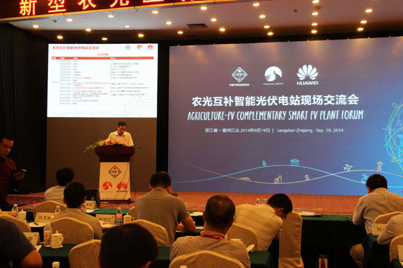 与会领导嘉宾们纷纷作出精彩发言,就农光互补、跨界融合的未来电站趋势、光伏行业技术发展趋势、新型农业光伏电站设计理念与实践、光伏发电并网技术及现网测试情况、农光互补的智能光伏跟踪系统、智能光伏电站解决方案等议题进行了深入、有效的发言和探讨。