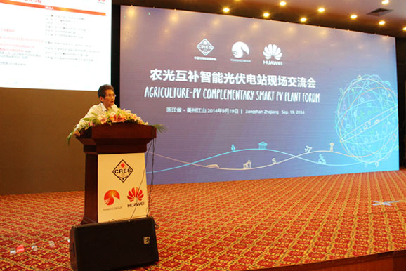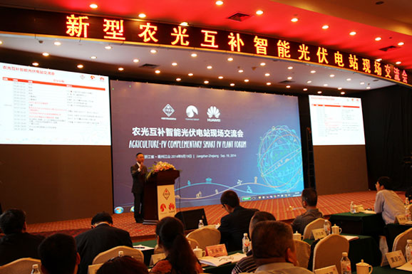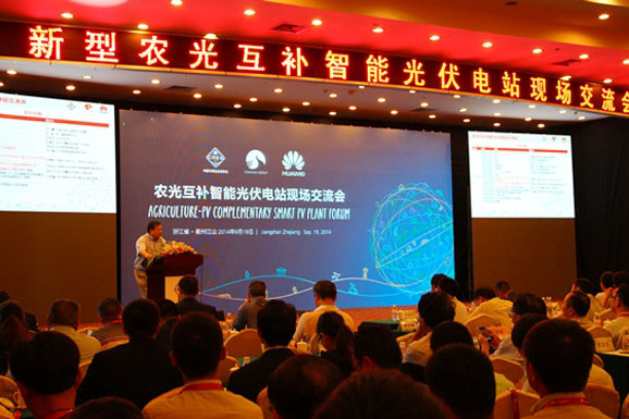 欢歌如潮动江山,专家荟萃耀浙西。2014年9月,浙江同景凤林30MWp光伏电站、江山国际大酒店彩旗猎猎,锣鼓喧天,猎猎红绸,跳动激情的火焰。一场由中国可再生能源学会、浙江同景新能源集团有限公司、华为技术有限公司主办的农光互补智能光伏电站现场交流会在此隆重举行。