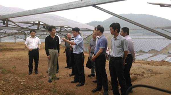5月25日,由江西省能源局局长郑沐春带队的考察团来我市考察光伏发电项目。郑沐春一行前往凤林镇株树村的同景光伏电站,考察农光互补和林光互补的做法。同景新能源有限公司投资3.02亿元,实施30MWp农光互补光伏电站,项目于2014年6月开建,仅用3个月时间就建成并网发电,是华东地区最早并网发电的大型地面光伏电站。该项目应用了同景公司自有专利,太阳光跟踪技术,发电效率可提高25-30%以上,截止今年4月份,已并网发电1447万千瓦时。同时板下仍可种植喜阴作物,真正实现农光互补。