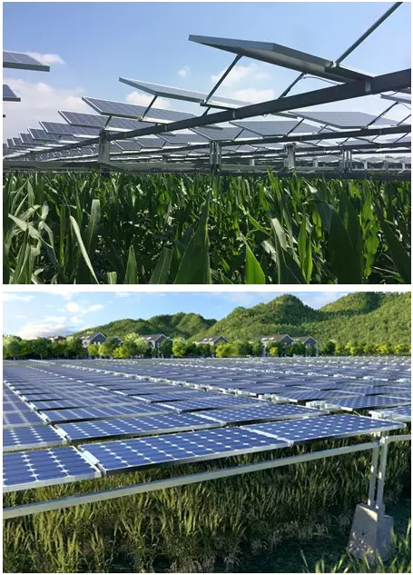 德兴市黄柏20MWp林(农)光互补光伏电站项目和湖北襄州峪山19MWp 农光互补光伏电站项目分别采用同景自主研发的斜单轴跟踪支架系统和平单轴跟踪支架系统。研发团队根据客户的要求,结合项目地地形地貌,因地制宜为他们提供完整可靠的解决方案。同景光伏跟踪支架系统的运用,无需挖掘和水泥浇筑,不破坏耕作层,最大程度保护电站内的原有土地结构。不仅满足大型农机作业,还提升了土地的产出效益。