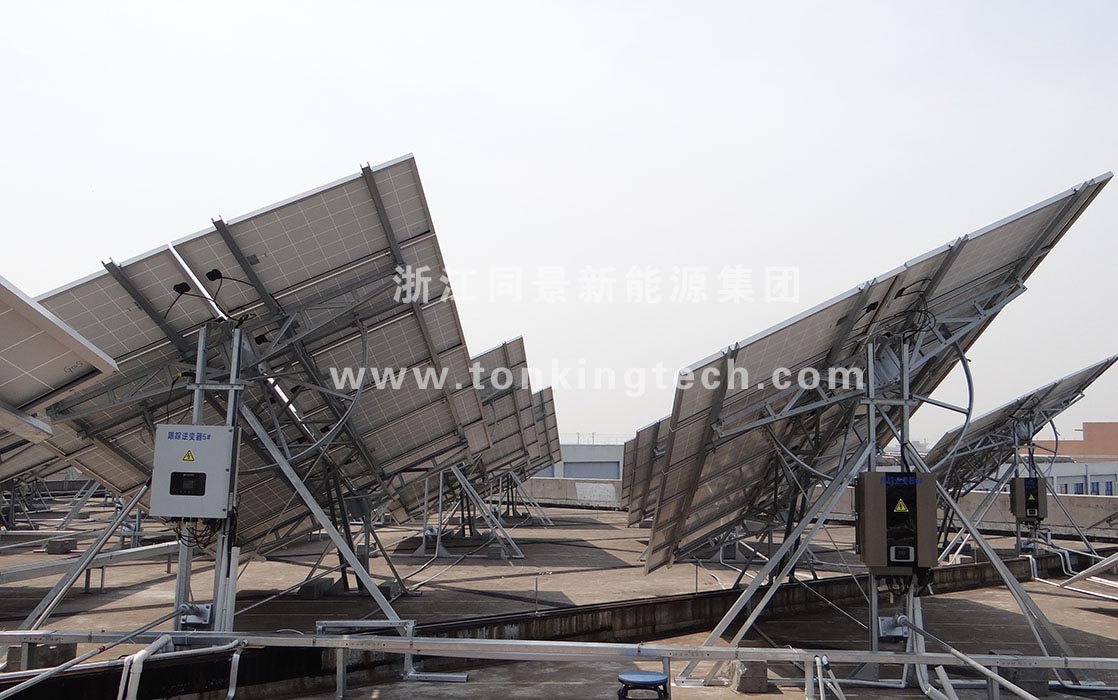 The project is located in Fenglin town, Jiangshan City, Zhejiang Province, the new-type dual-axis tracking system is independently developed and designed by Tonking Group. The first phase 30MWP project has a total investment of RMB 240 million, and covers an area over 130 acres with annual generation of 40 million kwh, and will save 320K tons standard coal during its life cycle. This PV Plant was commissioned at the end of Aug 2014 and was connected to the grid in Sep 2014.